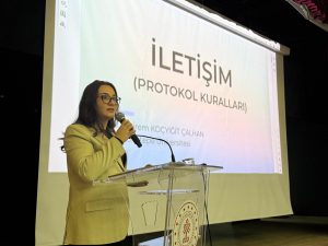 İçişleri Bakanlığı İller İdaresi Genel Müdürlüğü Muhtarlar Daire Başkanlığı ile Afyonkarahisar Valiliği İdare ve Denetim Müdürlüğü iş birliğinde düzenlenen Muhtarlar Akademisi Eğitim Programının ikinci gününde, üniversitemiz Girişimcilik ve Kariyer Geliştirme Uygulama ve Araştırma Merkezi’nden Öğr. Gör. İrem KOÇYİĞİT ÇALHAN tarafından İletişim ve Protokol eğitimi verildi.